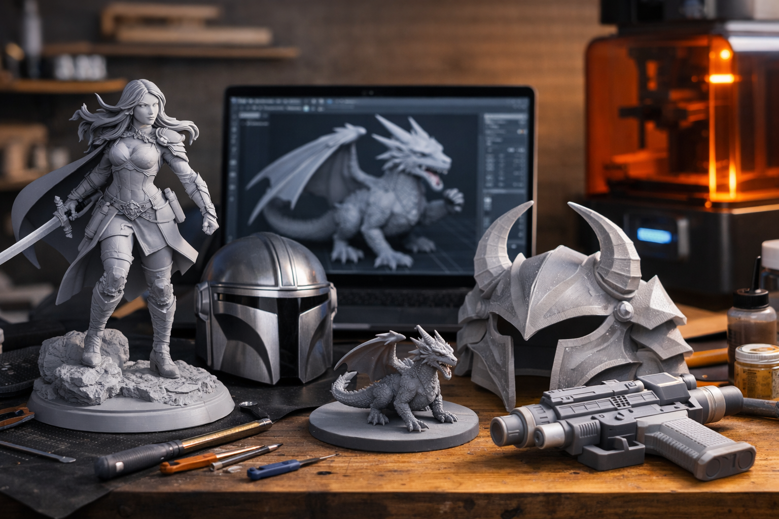 Wir fertigen individuelle Einzelstücke im 3D-Druck – ganz nach deinen Vorstellungen. Egal ob 3D-Figuren, Charaktere, Requisiten oder Cosplay-Teile: Wir machen aus deiner Datei ein greifbares Objekt.